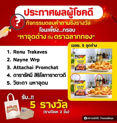 ตราแม่ครัว จะมีกิจกรรมตอบคำถามชิงรางวัลอะไรมาให้ร่วมสนุกกันอีก