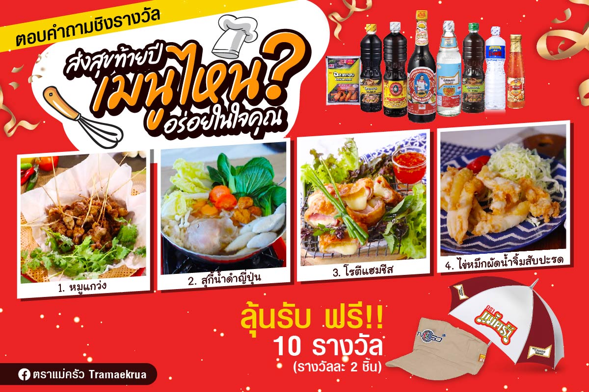 – ประกาศผลผู้โชคดี 2 ม.ค. 63 เวลา 17.00 น. ที่ Facebook Fanpage ตราแม่ครัว