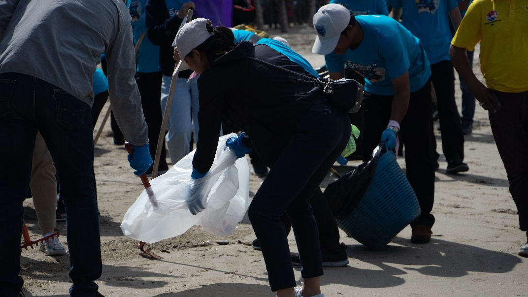 คณะผู้บริหาร พนักงาน เดินเท้าเก็บขยะ ตลอดแนวชายหาด 1.5 กม.