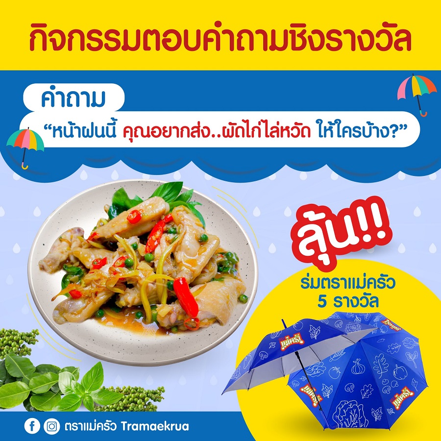 ลุ้นรับของรางวัล.. ร่มตราแม่ครัว จำนวน 5 รางวัล (รางวัลละ 250 บาท) รวมมูลค่า 1,250 บาท