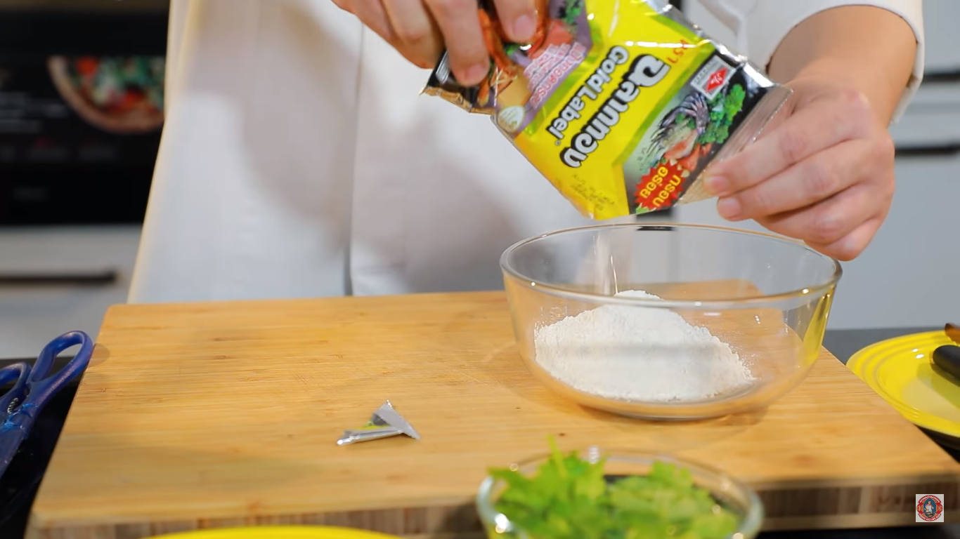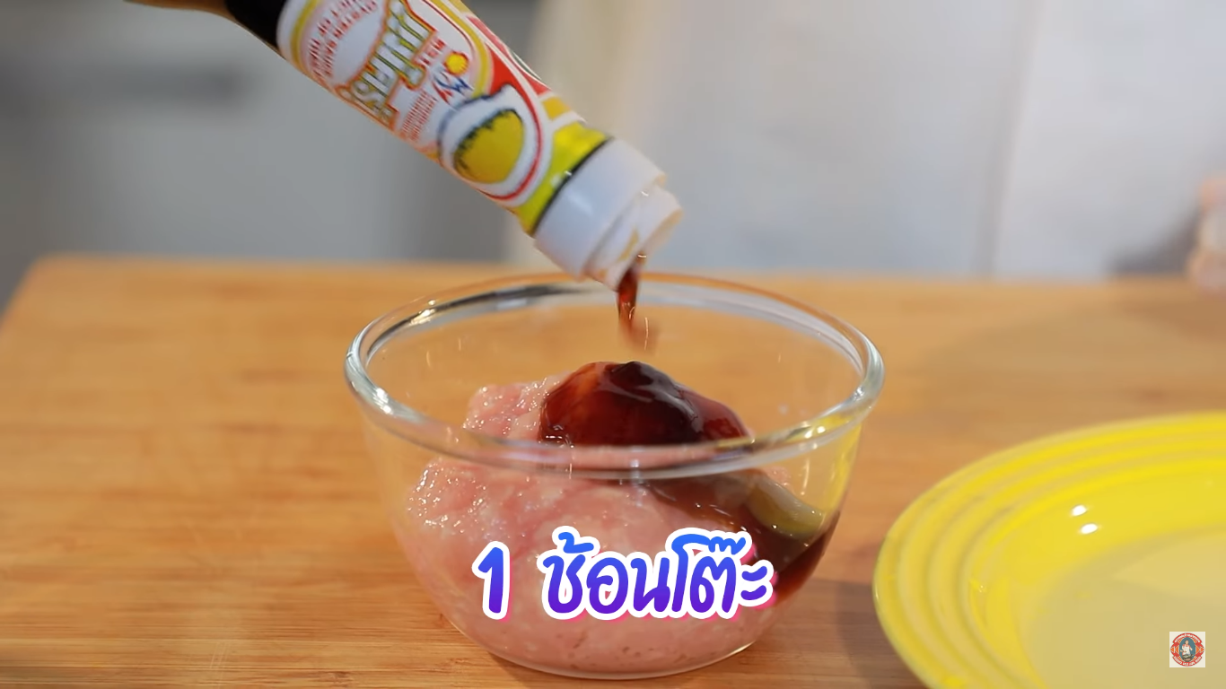 1.ทำในส่วนของน้ำผสม เพิ่มรสชาติด้วย ซอสปรุงรสฉลากเหลือง ตราฉลากทอง