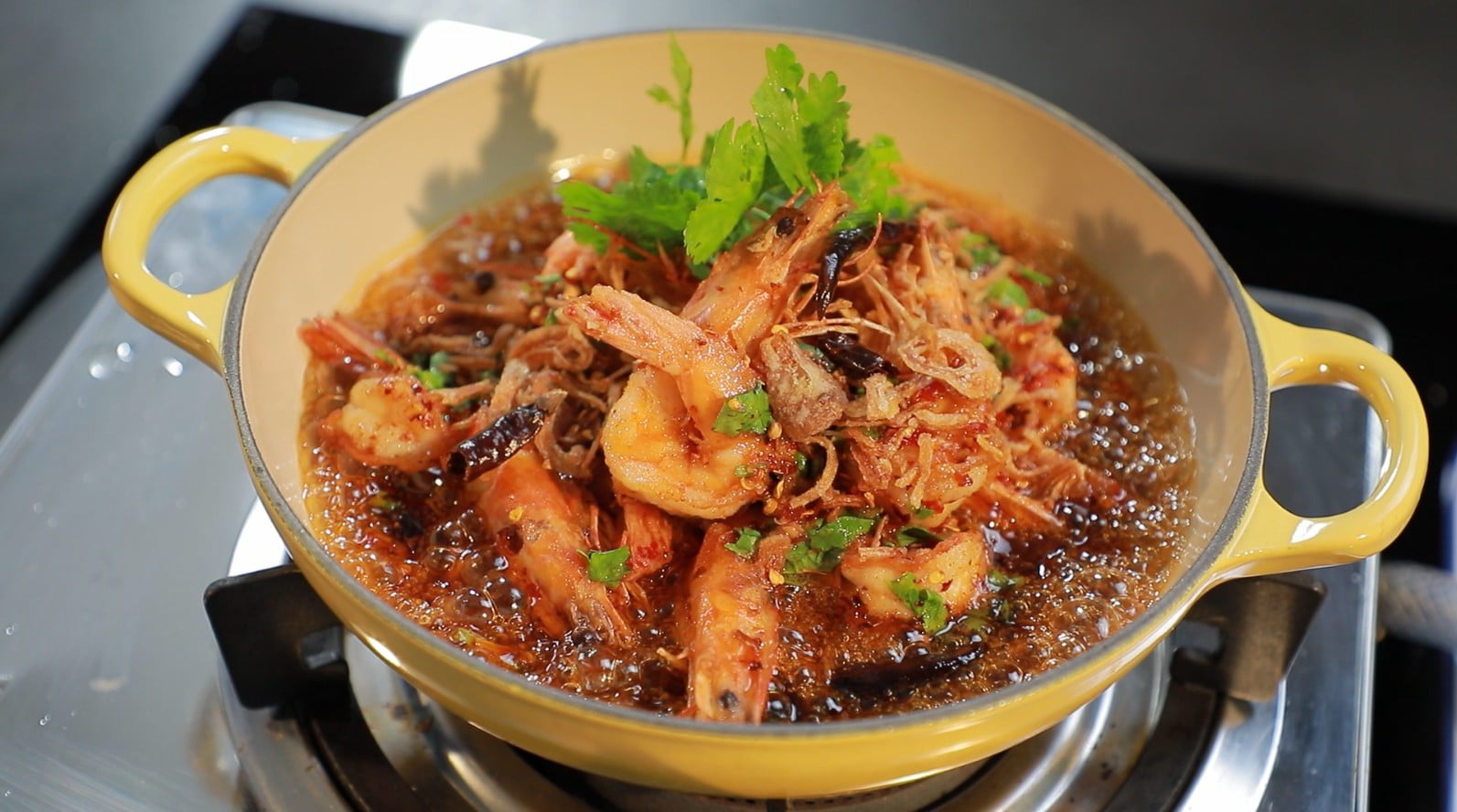 มาเริ่มกันที่เมนูแรก สไตล์อาหารไทย ใครได้กินก็ต้องติดใจ กับเมนู “กุ้งเดือด” ด้วยรสชาติที่เค็ม หวานอมเปรี้ยว ความอร่อยมาแบบสามรส สูตรนี้เด็ดมาก เพราะน้ำซอสของเราที่เข้มข้นด้วย น้ำจิ้มไก่ ตราฉลากทอง และฟินกับความกรุบกรอบให้กุ้งของเราด้วย แป้งทอดกรอบ ตราฉลากทอง…ถ้าใครสนใจเมนูนี้ กดติดตามแฟนเพจตราแม่ครัวไว้ได้เลยค่ะ แล้วเจอกัน ในวันที่ 24 สิงหาคม 2565 นะคะ