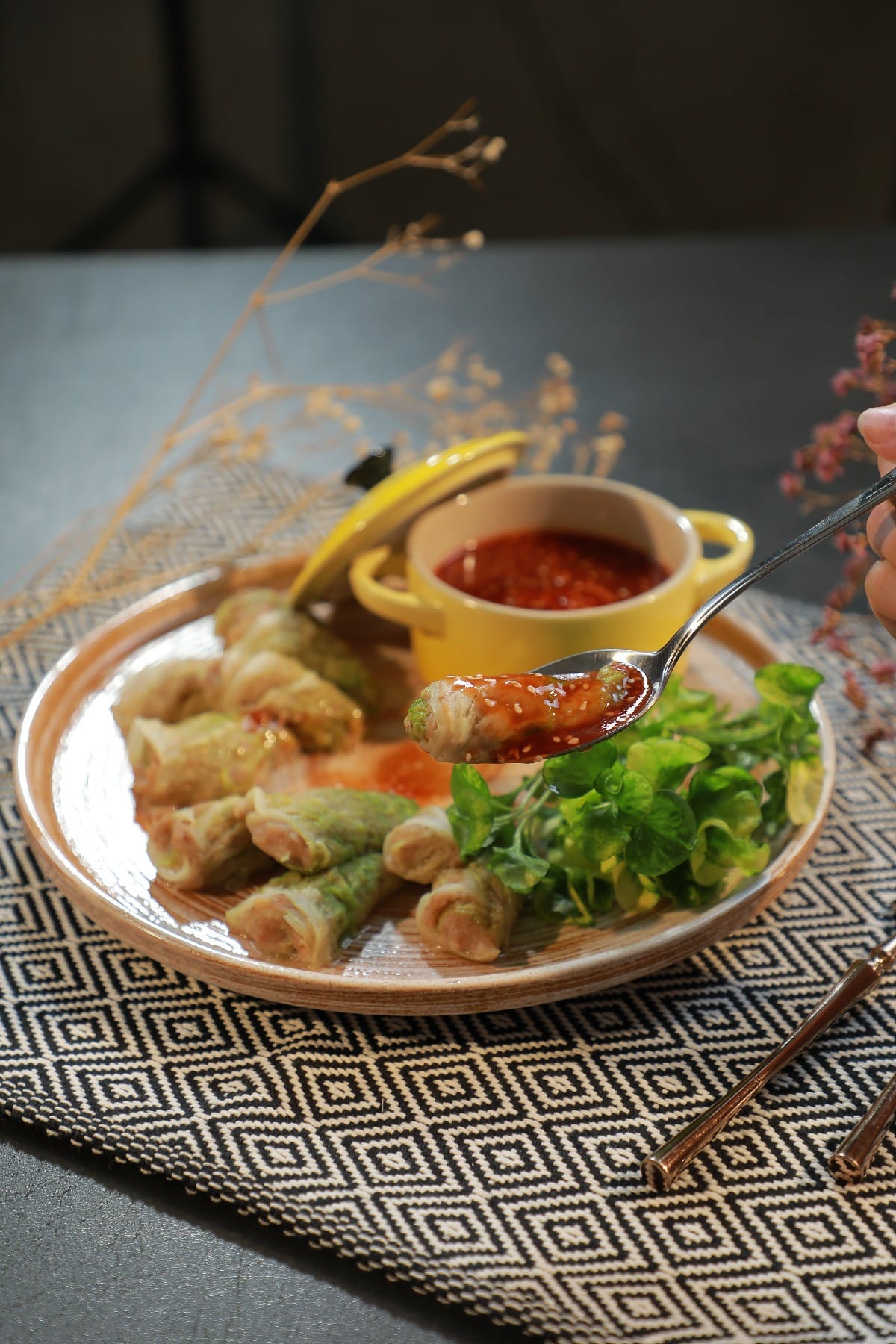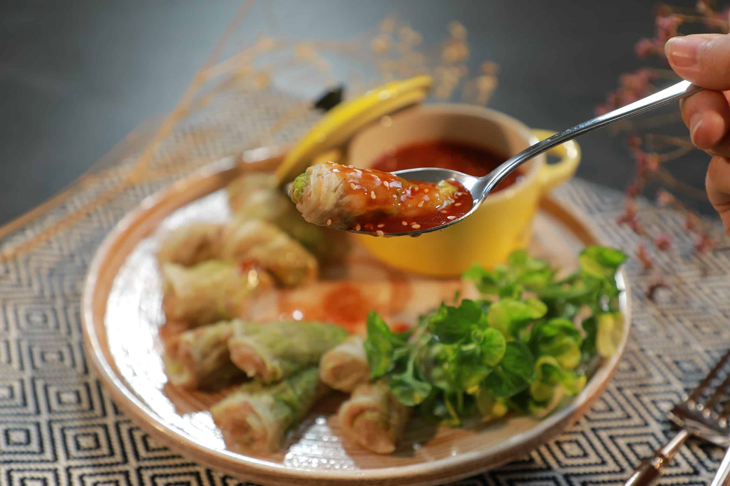 จากนั้นม้วนเป็นคำ ๆ และนำลงไปนึ่งประมาณ 10-15 นาที