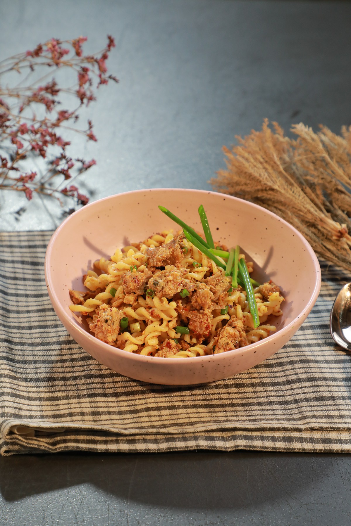 อาหารไทย ๆ จบไปแล้ว มาต่อกันที่อาหารฟิวชั่นกันบ้างดีกว่า โดยเมนูนี้ใช้อาหารเหนือ ผสมผสานกับอาหารอิตาเลียน มีชื่อว่า “พาสต้าไส้อั่วขยำ” โดยน้ำซอสของเมนูนี้จะมีรสชาติที่เผ็ด เปรี้ยว หวาน ให้อารมณ์เหมือนการกินลาบในรูปแบบใหม่ โดยจะใช้พาสต้าเส้นเกลียว ผสมกับตัวไส้อั่ว ข้าวคั่ว บีบมะนาวเล็กน้อย ใส่หอมซอยนิดหน่อย หิวเลยค่ะพี่น้อง เป็นเมนูของคนต้องการรสชาติแซ่บ ๆ ใครอยากลองทำเมนูนี้ ห้ามพลาดนะคะ วันที่ 7 กันยายน 2565